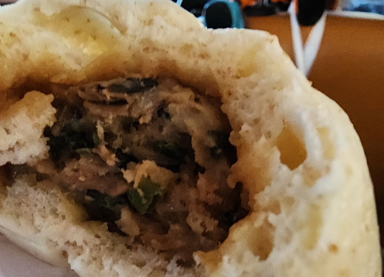 所以保持著試試看,所以停下車來買一些肉包饅頭來試試看吧,沒想到一吃下去就只有驚艷兩個字。肉包的肉還蠻多的,而且肉的部分還剛剛好。而皮的部分,因為是老麵,所以韌性夠而且香味又夠,吃了一個馬上就去又買了5個。