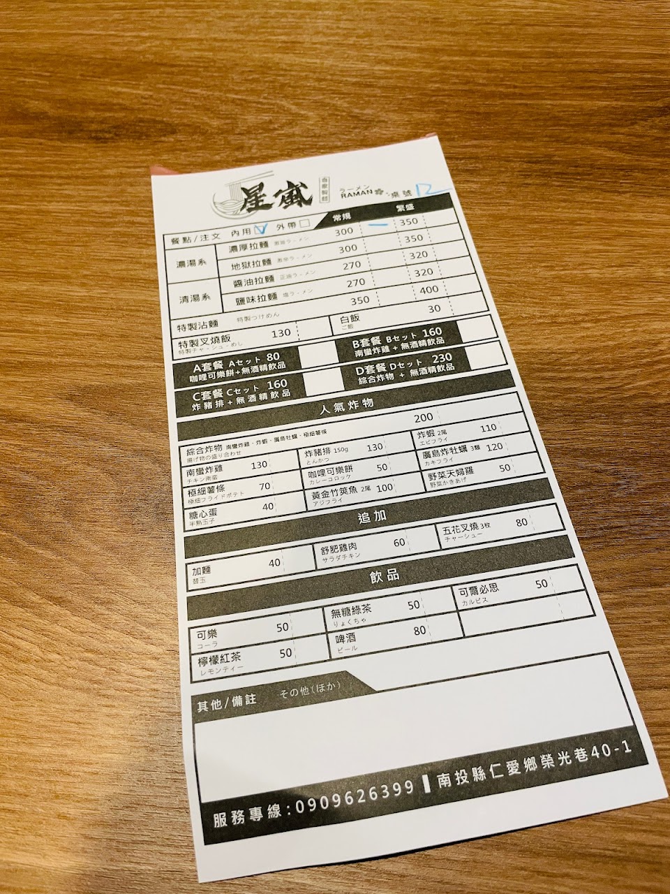 以日式拉麵來說 炸物很好 荀甜無異味 蔬菜爽脆新鮮 溫泉蛋微過熟蛋黃邊有少凝結成粉 肉質細嫰 鮭魚子純美觀可有可無 整體配料可以 但湯頭 可能太貪心 有太多種 未必每種都精研 我只試了醬油湯底 有香港屋村主打中學生客源那種日式店用現成醬油無調過的味道 即是港式湯底 不是不好食 但是帶地方口味的店 非想貼近日本本土的味道 建議先集中主打一兩種湯底 做好才用限定湯底試客人反應 從對話中好像店才開了2年多 服務上整體禮貌的 有糖果及積木給客人等待時有東西做但可能剛開店 有點安排上混亂 店外的小花園才是店家主打的賣點 設計得很美 有細心位 擺拍好地方 總結 主要是來拍照的 餓的附近又只得店家一鋪 清境來說拉麵勝過其他 但對比香港那些日本過江龍或日本的拉麵店 又不是想像中的那種 餐點:3 服務:4 氣氛:5