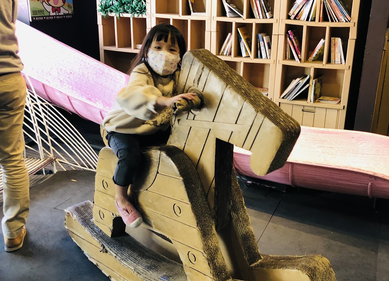 都是紙類的一些手工藝,還有小朋友可以玩的溜滑梯跟搖搖馬。