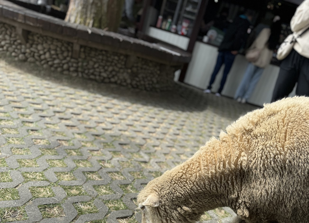 綿羊秀很有意思,櫻花季來很漂亮,只是放牧的羊很現實,有草才會靠近,吃完就馬上跑