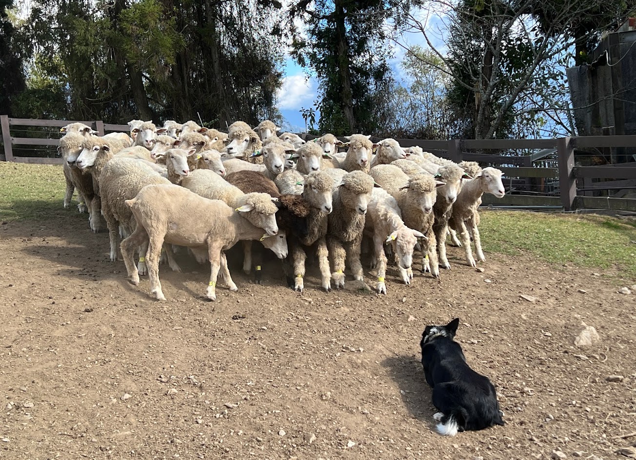 一開始會由?牧羊犬趕羊至山坡 後續再請牧羊犬趕至羊圈 中間會請一個男生遊客協助分類?羊群