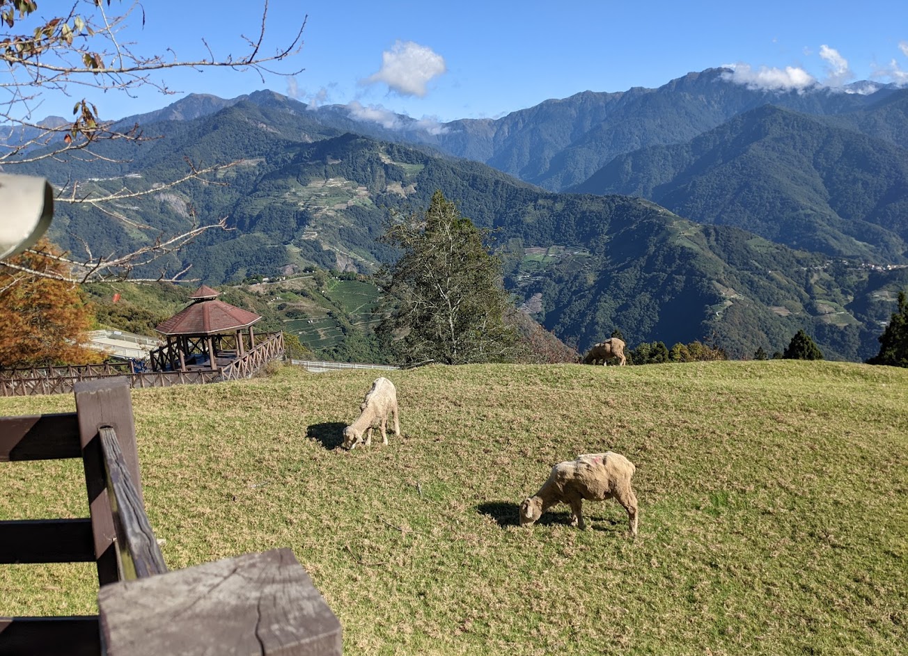 清境農場天氣涼爽,天空好藍,一大片草原上有羊兒在吃草,真的好療癒啊!