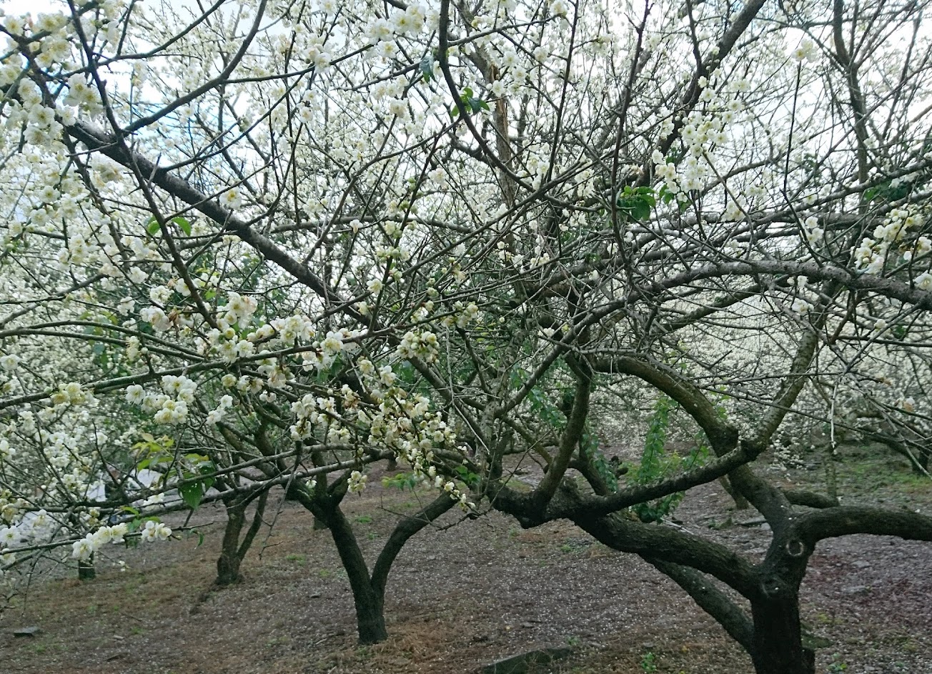 範圍不算太大的梅園,其實是私人種植免費開放給民眾參觀,有別於風櫃鬥、烏松崙等諸多較高海拔地區,這兒是在一般平面道路旁的「落英紛紛」。