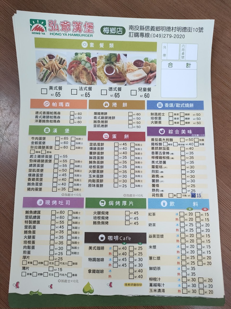 2024最新在地推薦餐廳的菜單_Hong Ya Hamburger的菜單、圖片