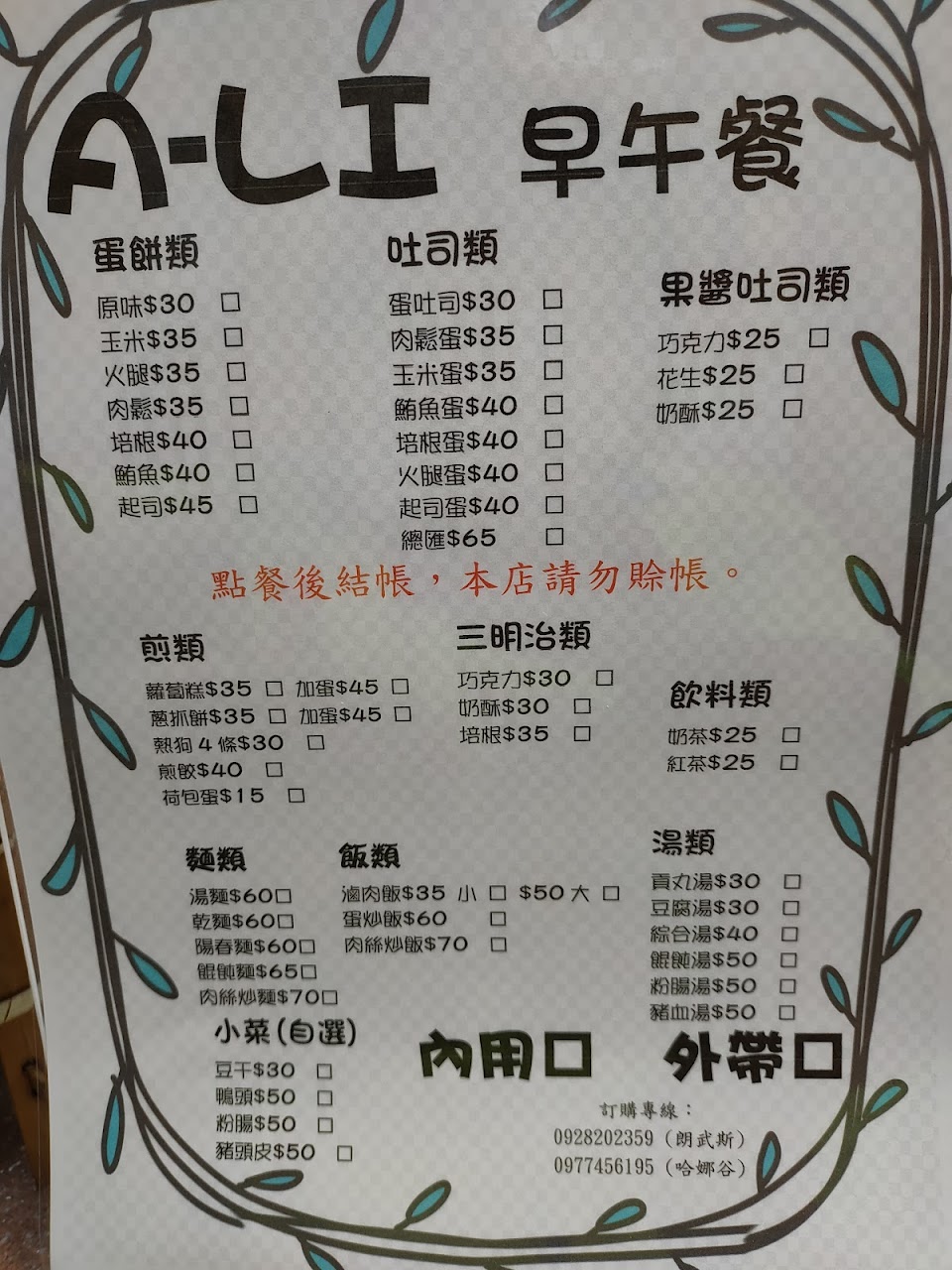 2024最新在地推薦餐廳的菜單_A-li 早午餐的菜單、圖片