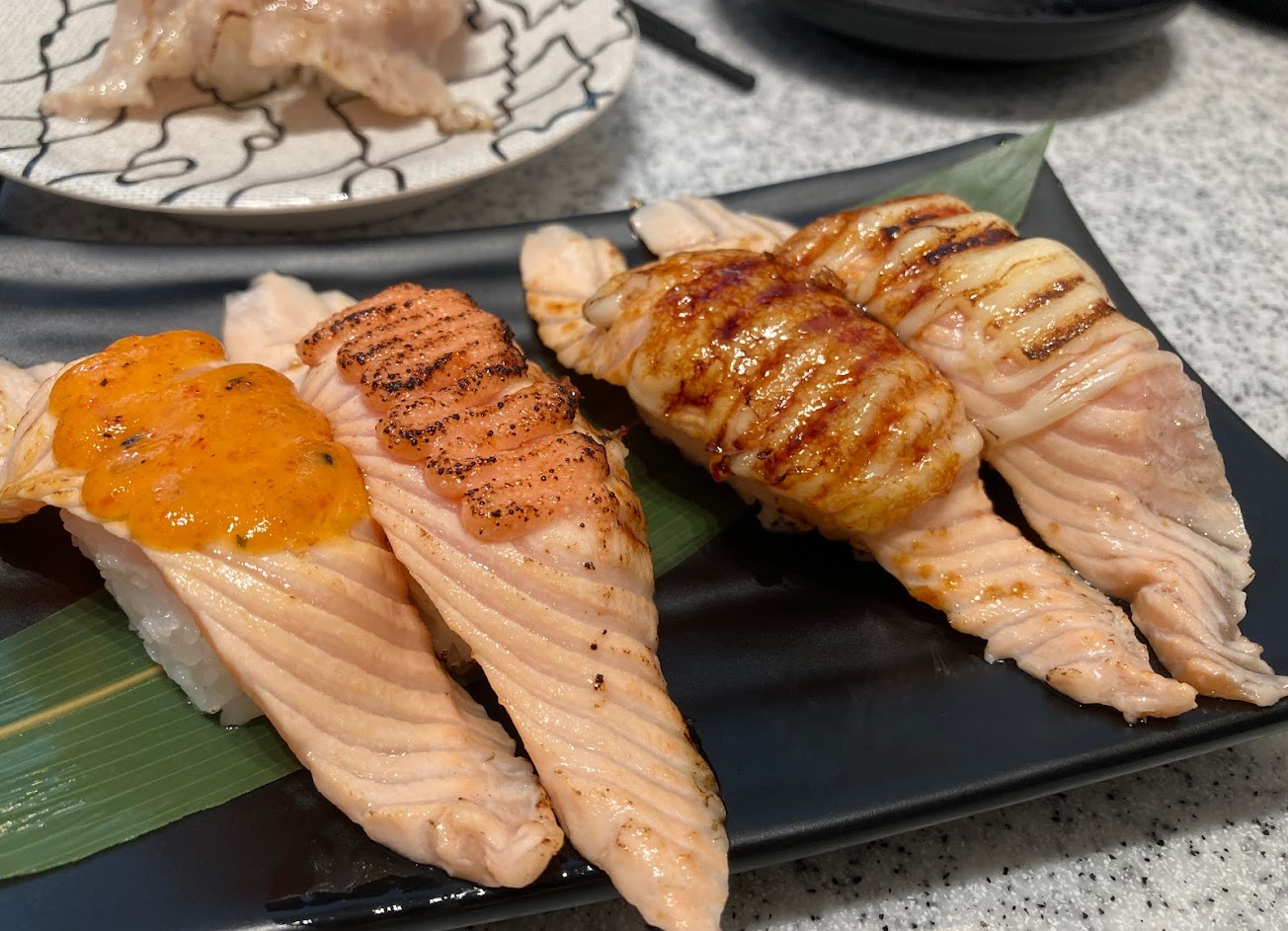 有別於迴轉壽司,用軌道式的小火車送餐,感覺挺特別的,對小孩來說應該會感到很新奇,但…感覺CP值不高,壽司的米飯吃起來不夠多,比爭鮮少一些,食材新鮮度也普普,一個人可能要吃個五六百元才有飽足感