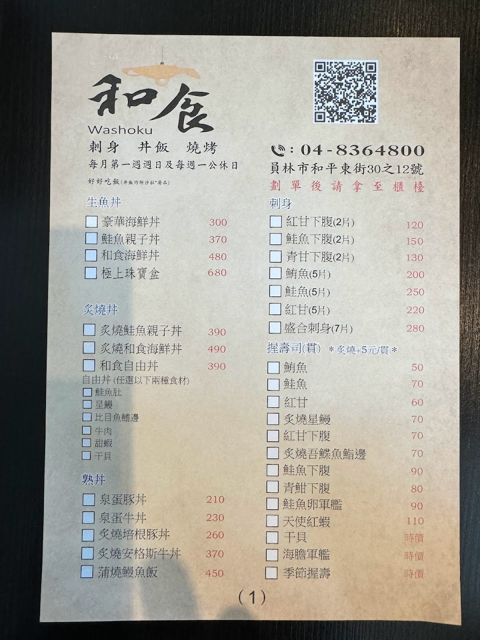 員林地區有一定水平的日本料亭,炙燒和食海鮮丼魚種眾多,食材新鮮,份量充足,特別是烤蝦頭,又香又脆。前菜和風沙拉口味清爽,鮭魚味噌湯好喝不油膩。唯一的缺點就是醋飯吧,偏甜,差強人意。還會想再光顧。