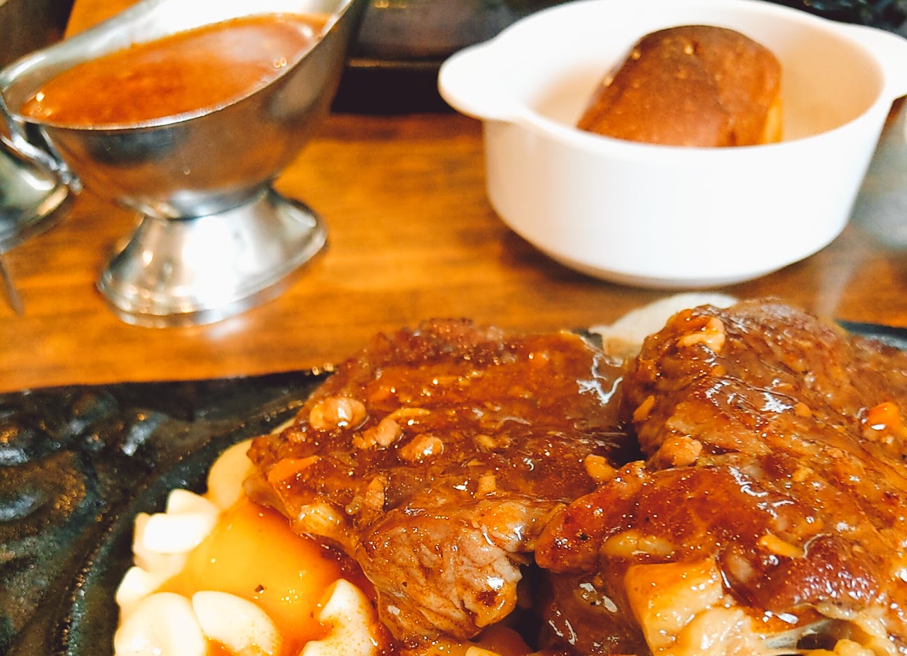 是一家很傳統的牛排館。雖然物價上漲,該有的味道都還保留。冰淇淋的甜筒也是好吃的餅乾那種? …