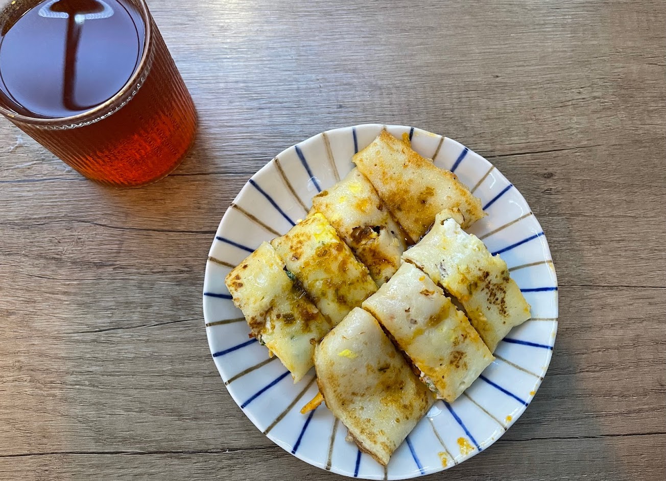 Q軟的粉漿蛋餅皮,還能吃到青蔥的脆感,搭上特別的醬料,應該是醬油?整體而言簡單而好吃,沒有一般早餐店了廉價化學感,有真材實料的感覺