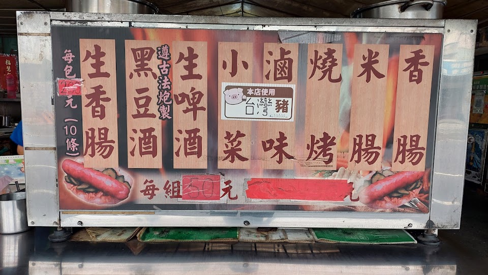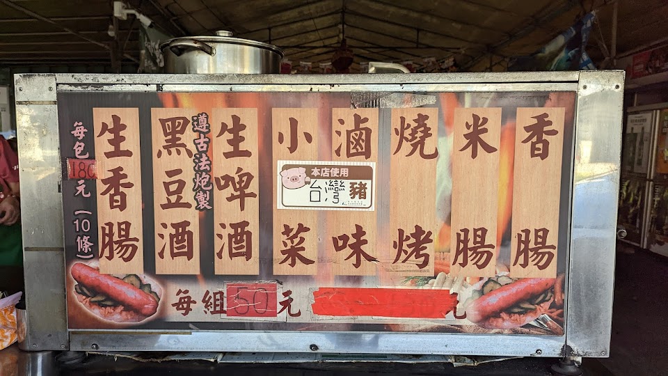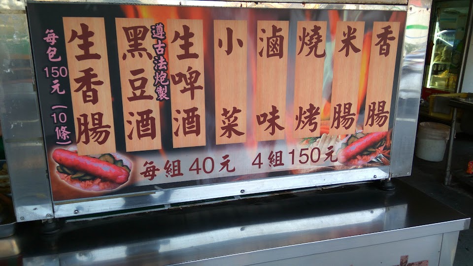 大腸香腸普普,沒有預期的炭烤香味,賣點可能是配料菜脯吧。四季豆是水煮拌蒜頭,原本以為是用烤的。菜單沒有標價都是靠點菜店員手寫不太好。環境也很簡陋有蚊子