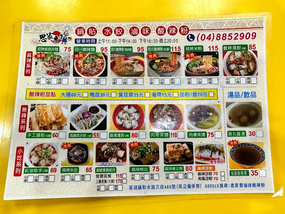 2024最新在地推薦餐廳的菜單_思家香滷味酸辣粉的菜單、圖片