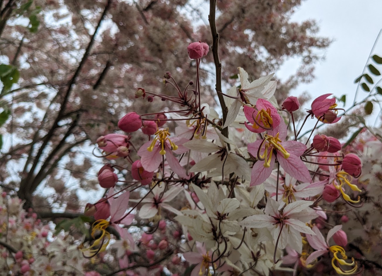 花旗木又叫泰國櫻花,屬於新近引進台灣的新樹種,原生於泰國、東南亞,喜愛高熱環境,在台灣三月份就可看到它開花,花開粉紅色,所以又名Pink Shower Tree。耐熱耐旱,是近年台灣中、南部熱門的景觀、行道樹樹種。