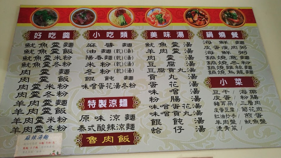 涼麵 抄手 豆干 海帶 菊花肉 味噌蛋花豆腐貢丸湯 肉羹