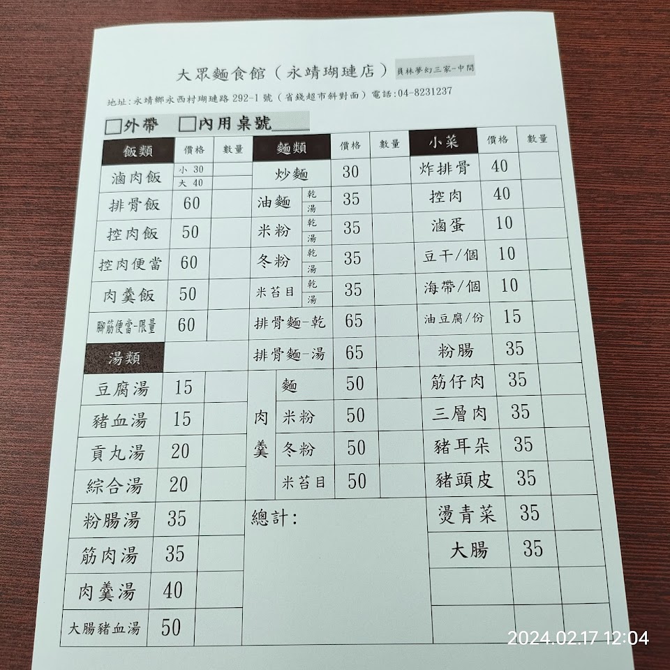 2024最新在地推薦餐廳的菜單_大眾麵食館(瑚璉店)的菜單、圖片