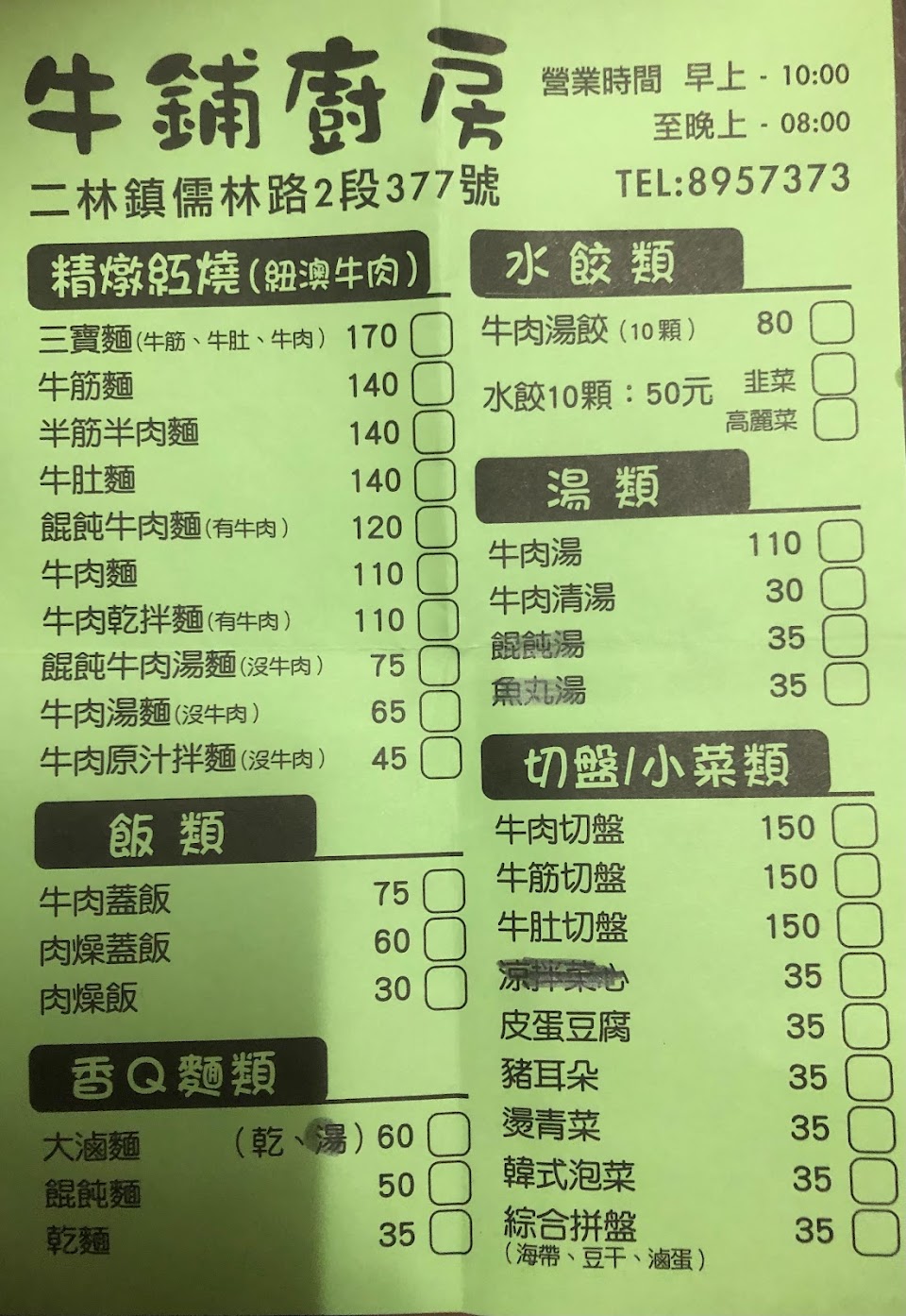 在二林鎮上吃牛肉湯麵的好選擇,價格便宜,環境舒適,老闆娘人好,牛肉湯頭不錯好喝,缺點就是在餐點上是用免洗碗筷上。