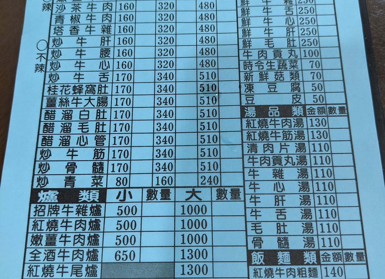 好吃 服務 內用 餐點類型 午餐 平均每人消費金額 $1-200 餐點:5 服務:4 氣氛:4 建議的餐點 牛雜湯, 薑絲牛大腸