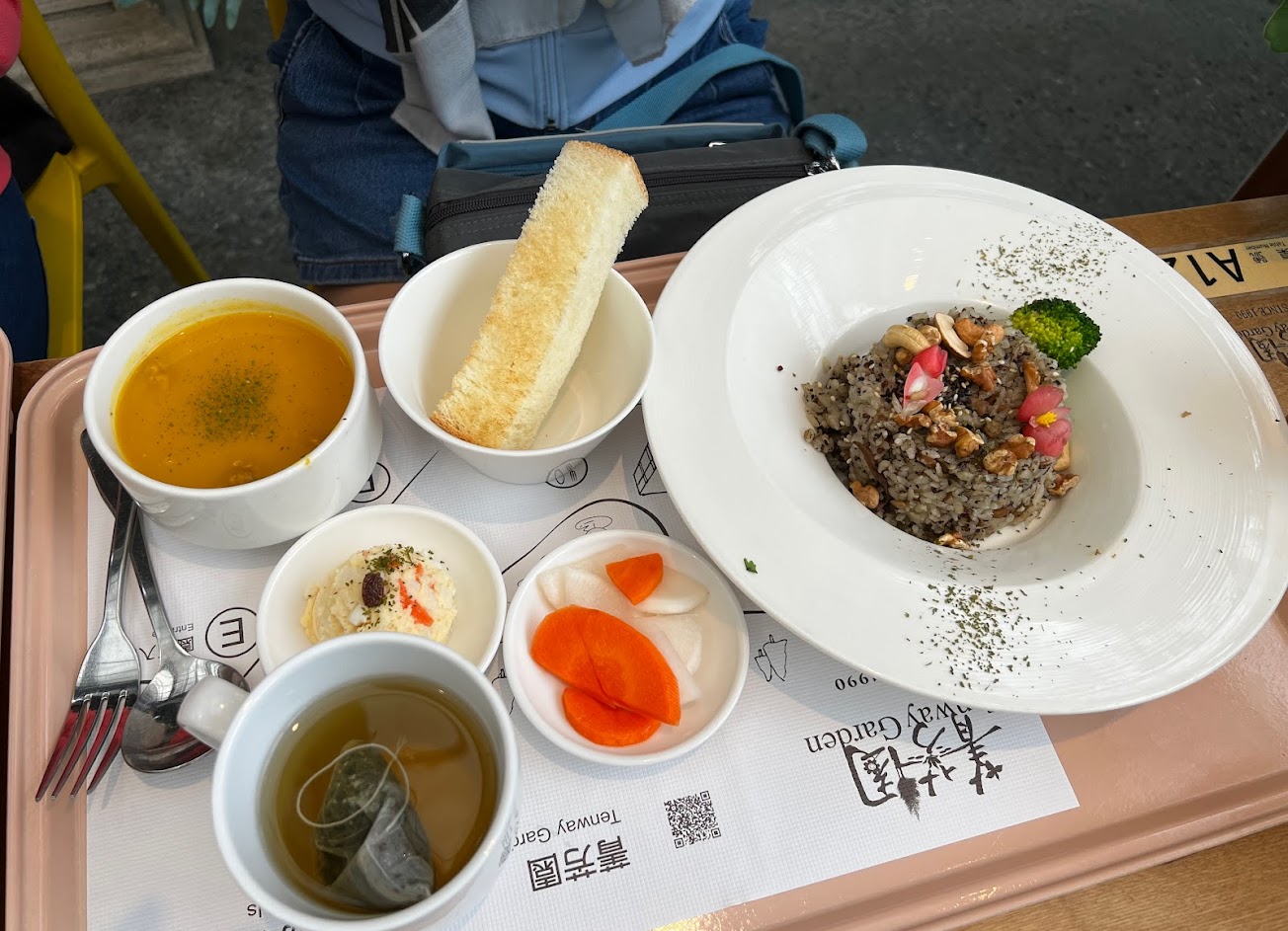 入園免門票,但餐廳用餐有低消,餐點的部分我個人覺得口味普普但不難吃,就是選擇少了點然後價位比較高,CP值偏低。不過可以坐在美美的玻璃溫室餐廳裡,一邊用餐、一邊欣賞著窗外的美景也是很chill的,不知不覺心情就跟著放鬆了起來☺️