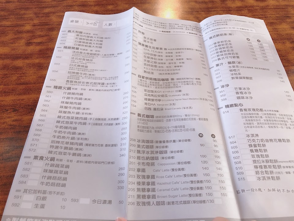 點了花草火鍋 泡菜火鍋 白醬蝦義大利麵 燉牛肉 …