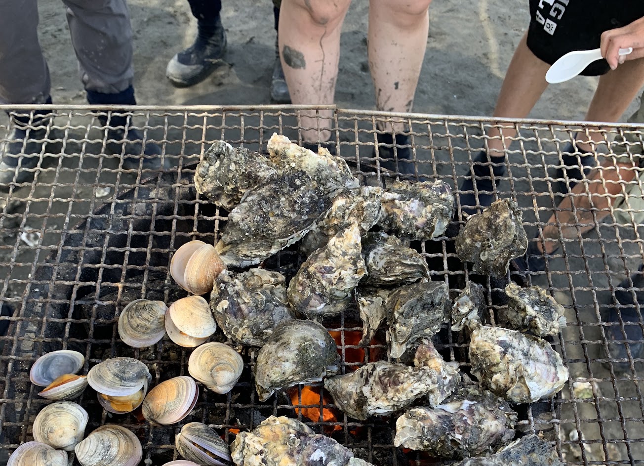 海邊生態導覽老師解說精闢詳細很棒! 體驗綁蚵殼養蚵清害蟲, 養赤嘴;最後烤赤嘴烤蚵享用鮮嫩多汁美食;並了解生態珍惜資源&感謝大海賜予!