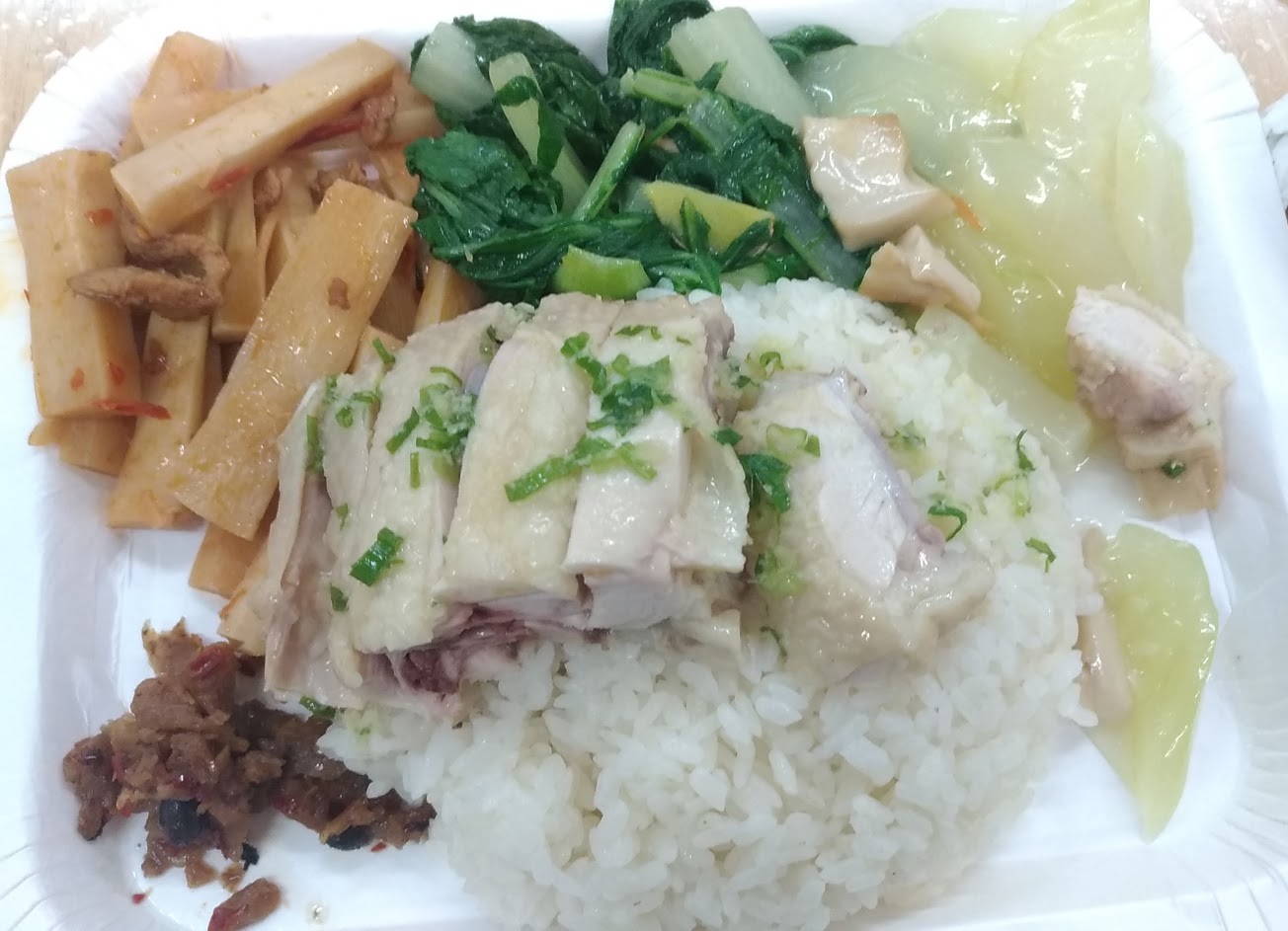 吃粗飽沒問題,雞腿很大,不過油耗味重,其他配菜就比較差了