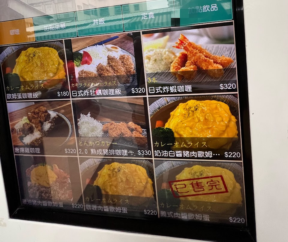 使用點餐機點餐付款,等候叫號,內用用餐時間為45分鐘,每個位子上方,有湯杯,調味罐,餐具及面紙,附熱湯,座位白色椅面建議更換或清洗椅面上髒污,用餐過程沒有可以放置隨身包包的置物籃,因為是高腳椅,椅面不大,屁股坐上後,沒有空間再放包包,所以整個用餐過程,包包都要背在身上,點的咖哩肉醬歐姆蛋跟奶油白醬豬肉歐姆兩種醬都偏鹹,用完餐後頻頻灌水這樣?