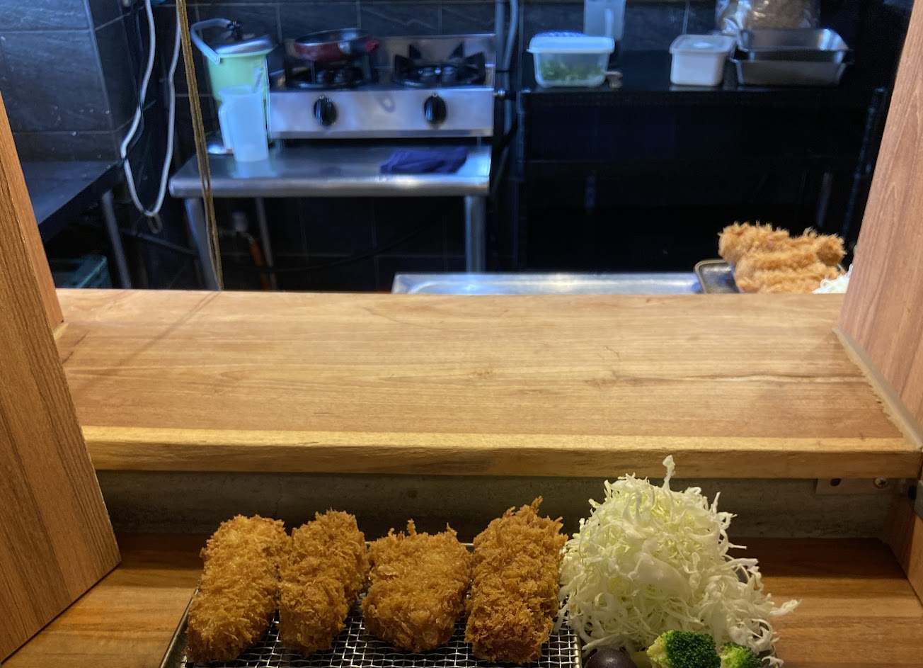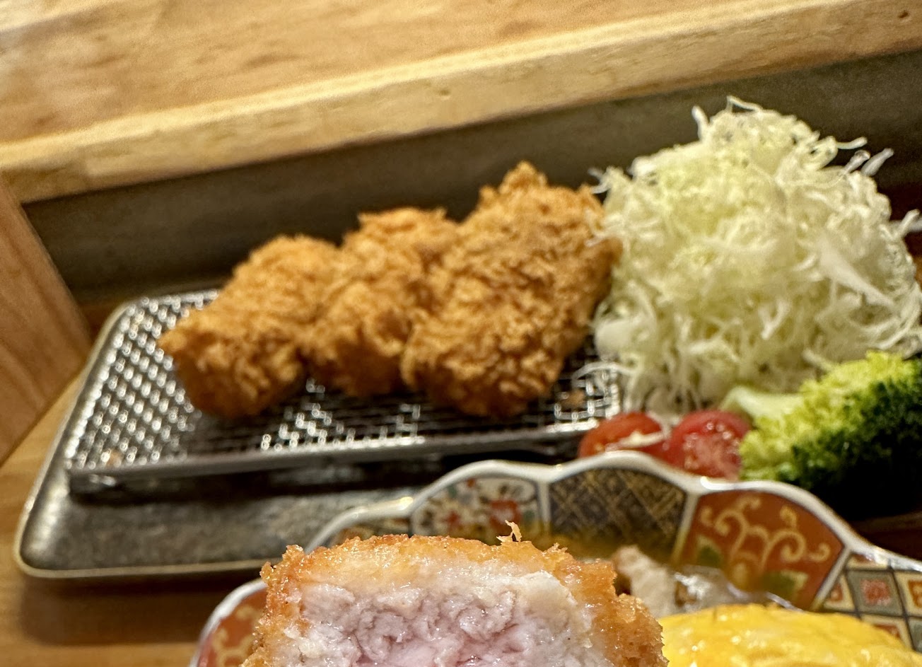 炸牡蠣很好吃!!炸豬排很厚很有滿足感?