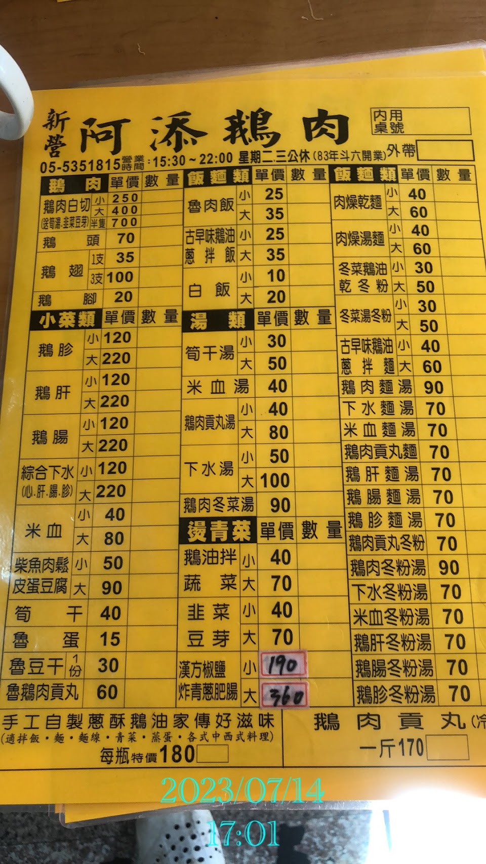 2024最新在地推薦餐廳的菜單_新營阿添鵝肉擔(斗六店)的菜單、圖片