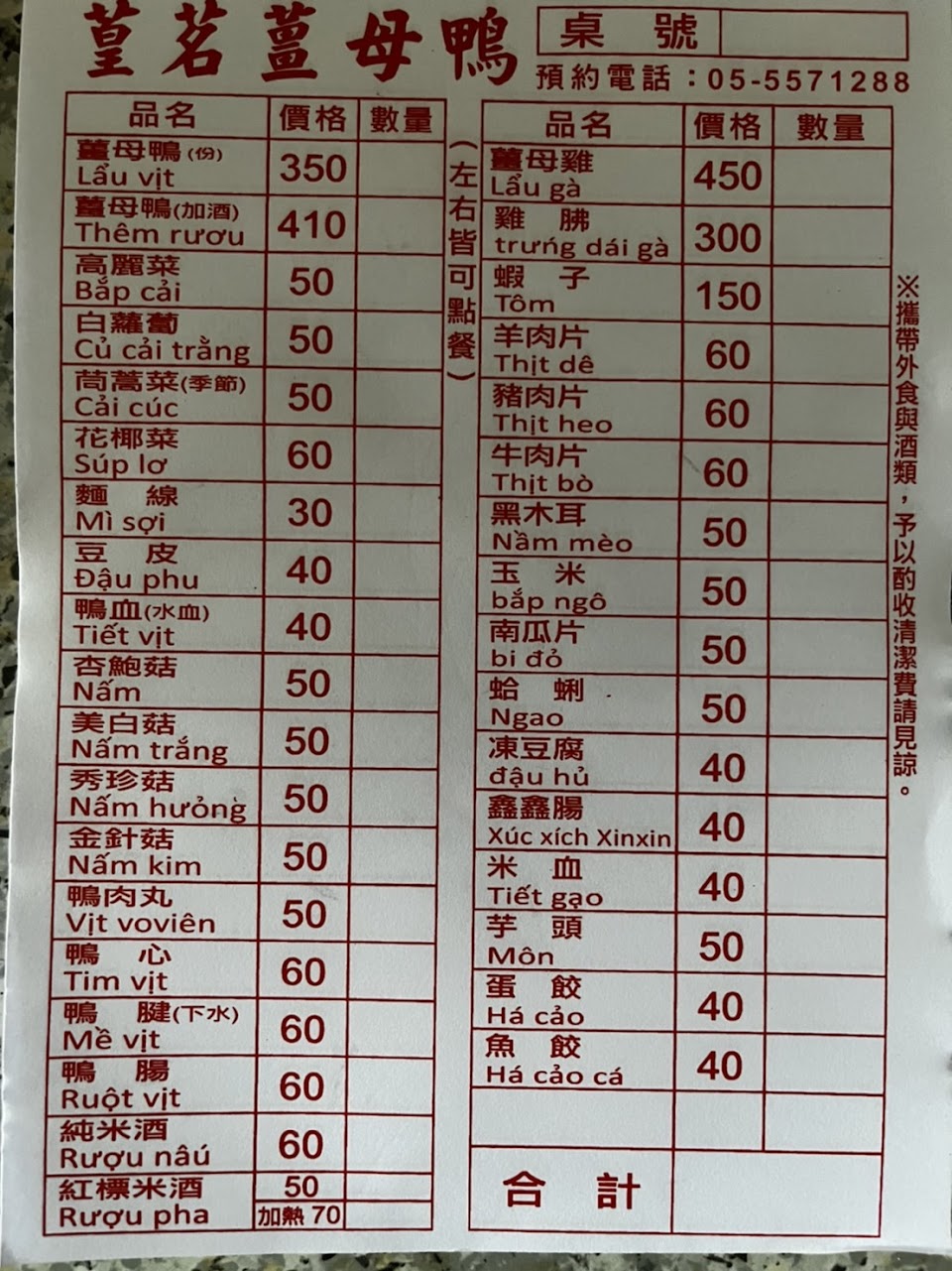 2024最新在地推薦餐廳的菜單_斗六葟茗碳燒薑母鴨的菜單、圖片