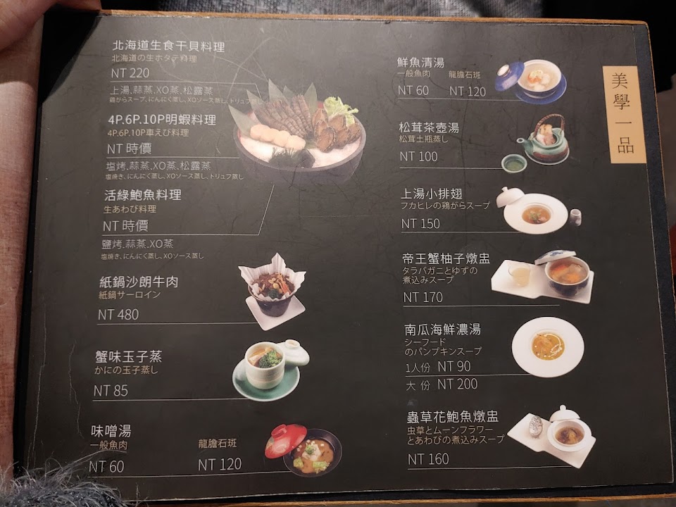 鮮魚頭火鍋, 炙燒牛肉, 金磚鹽焗鮑魚