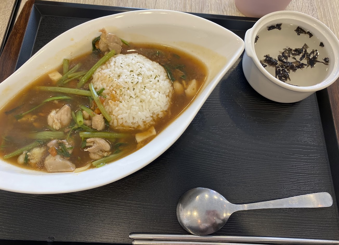 只是燴飯旁的湯有點問號❓白開水+紫菜?