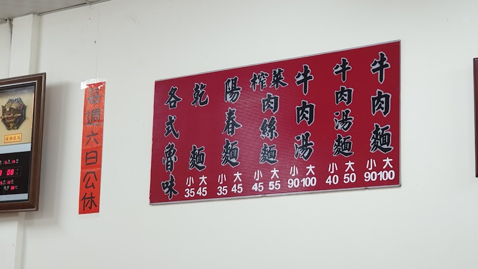湯頭算不錯,牛肉屬有嚼勁不到爛亦不柴,麵不錯吃,牛筋較耐咬,不夠軟爛,牛味較重(每人觀點不同),一人老闆親切熱情,cp值頗高,若老闆有空至台中玩,推薦嚐鮮西屯逢甲區的卯金刀食堂的牛肉麵(巷內中的巷內小店,超不好找),該店為我目前吃過最好吃的牛肉麵,跟老闆您同為一人作業