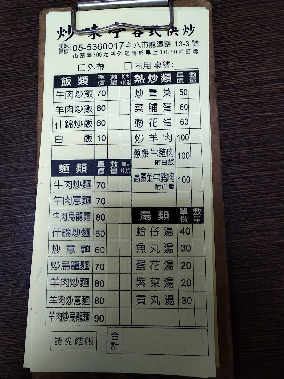2024最新在地推薦餐廳的菜單_炒味亭的菜單、圖片