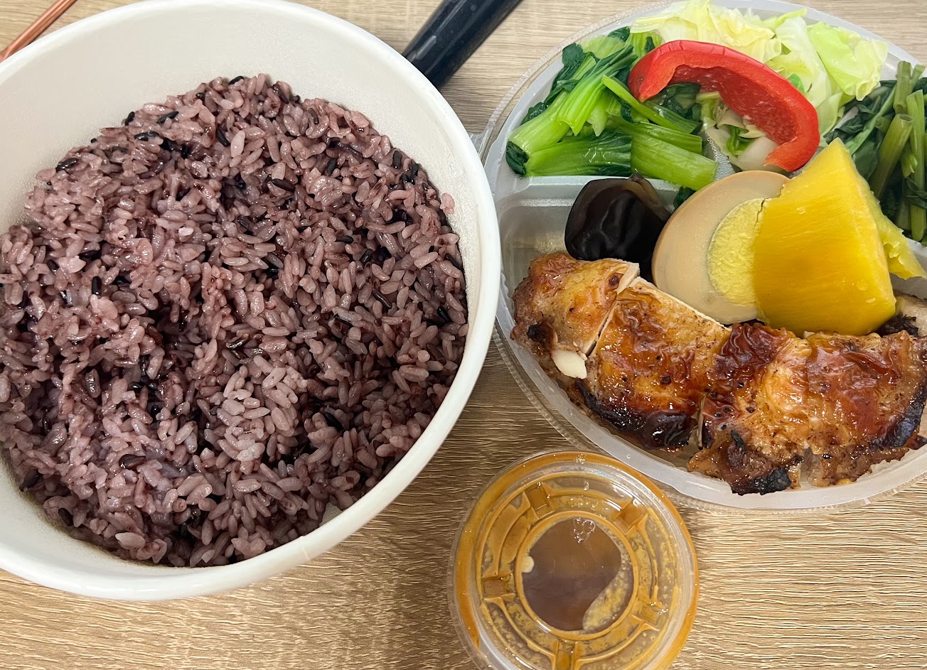 醬汁酸酸甜甜,沾雞胸肉真的好好吃,點了半飯,下次試試看其他餐點,環境很好,出餐快速,有吃飽,很健康讚讚。
