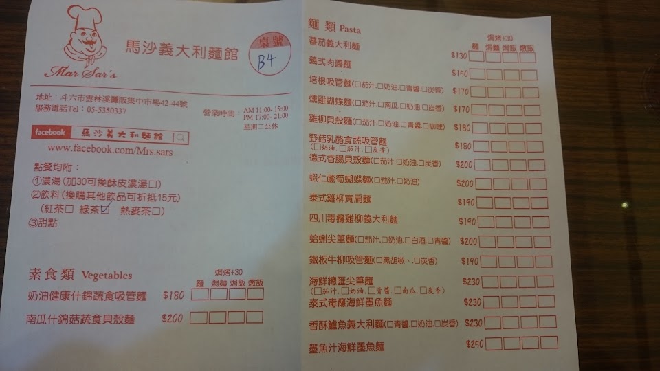 2024最新在地推薦餐廳的菜單_馬沙義大利麵館的菜單、圖片
