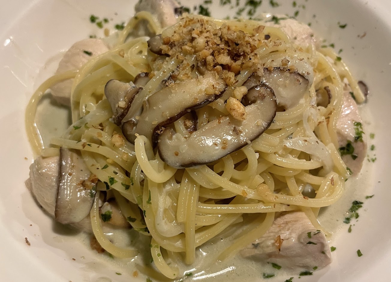 我忘記我的義大利麵是什麼口味😂但是起司搭配白醬很濃郁,雞肉也很嫩,對剛拔完智齒五天的人來說很友善💁🏻♀️