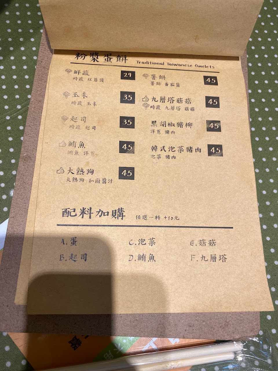 餐點內容稍微有別於一般早餐店,不排斥九層塔的,可點九層塔蔥抓餅試試。