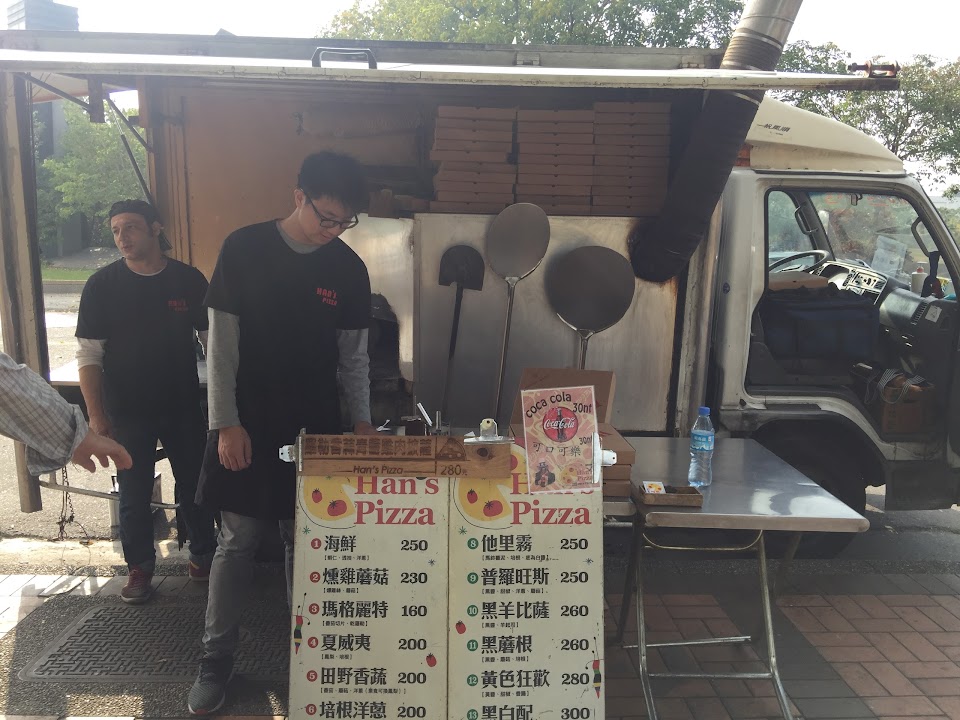 位在斗六人文公園的窯烤披薩攤,烤出來的披薩餅皮外表酥脆、裡面蓬鬆,相當令人驚豔,不輸臺北的許多披薩店。特別推薦他們的他里霧(280元),馬鈴薯泥、培根、起司和白醬的搭配相當特別且美味。一個男生吃一個披薩差不多會飽,建議多人以上一起去吃,比較能吃到不同的口味。六點左右海鮮口味就賣完了,如果想吃到海鮮的話建議早點到。整體而言是家相當出色的披薩攤,不但是斗六這一帶難得的美食,更是擁有跟臺北名店不相上下的水平,是在斗六想吃披薩的不二選擇。