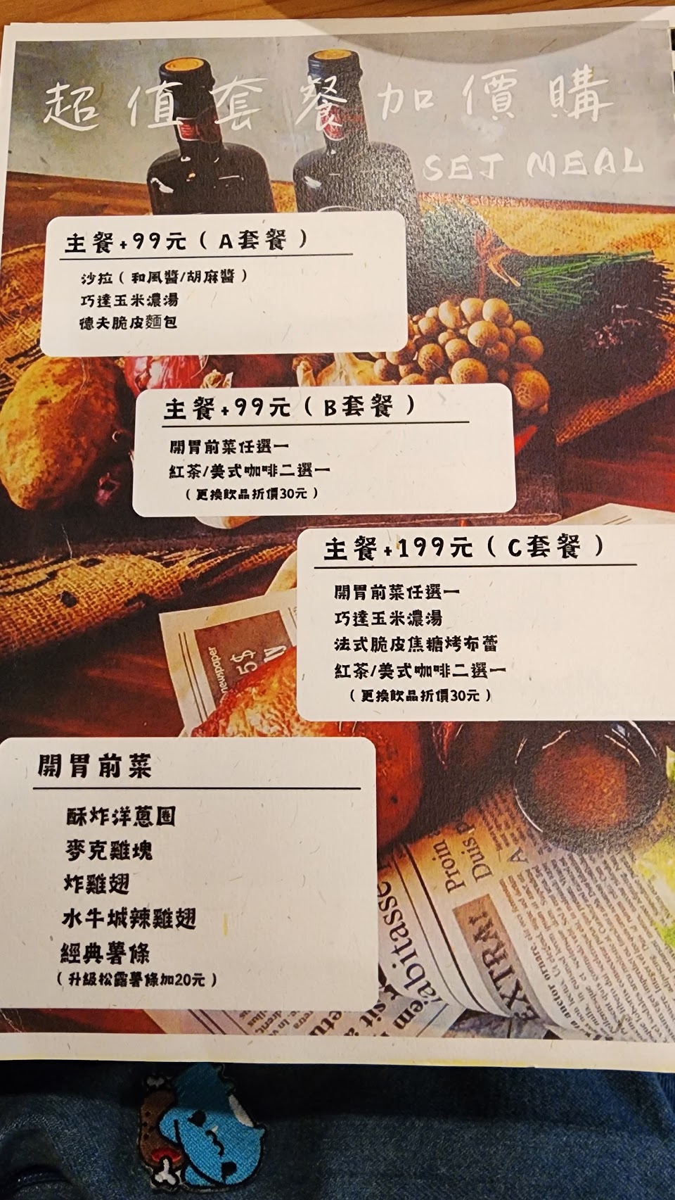 過年期間來這用餐,原本是雙人套餐加兩個單點,結果跟我說過年期間不能單點是甚麼意思,點一份主餐一定要加點套餐?強迫消費?而且套餐的70元飲品選超過70元的就只能抵30元是怎樣。70元以下的飲料還只有2種,只有紅茶跟美式咖啡可以選,奶茶是80。套餐70元以上的飲品只能抵30元而不是70元這件事我是第一次看到,賣比你們貴的餐廳都是直接補差價而你們是只能抵30元。