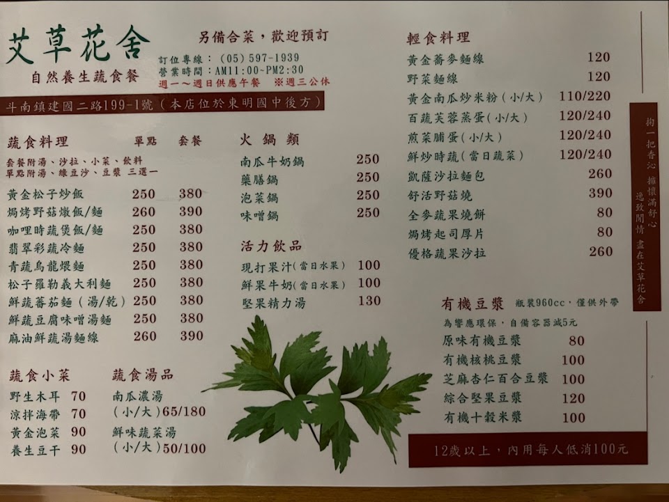 2024最新在地推薦餐廳的菜單_艾草花舍的菜單、圖片