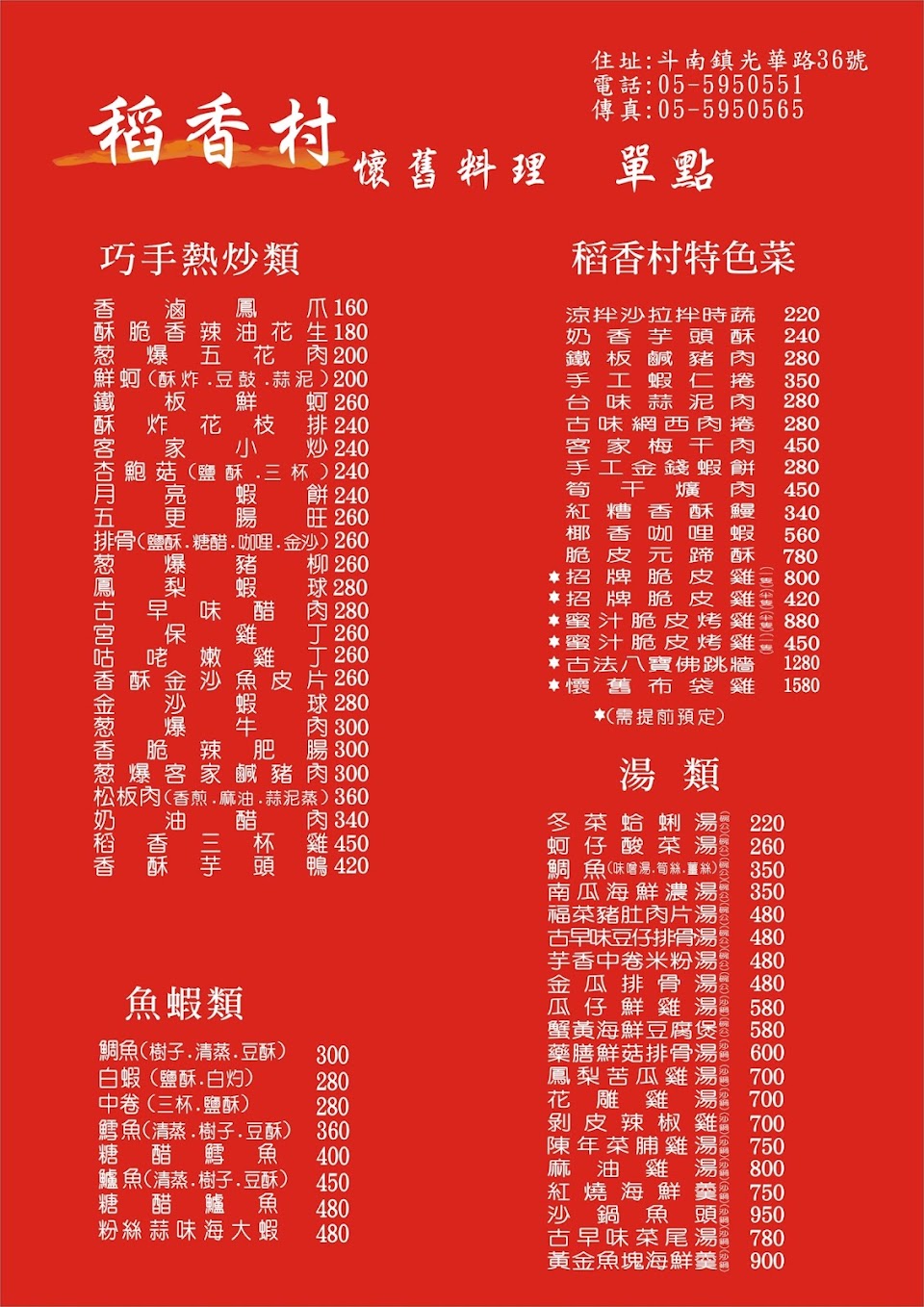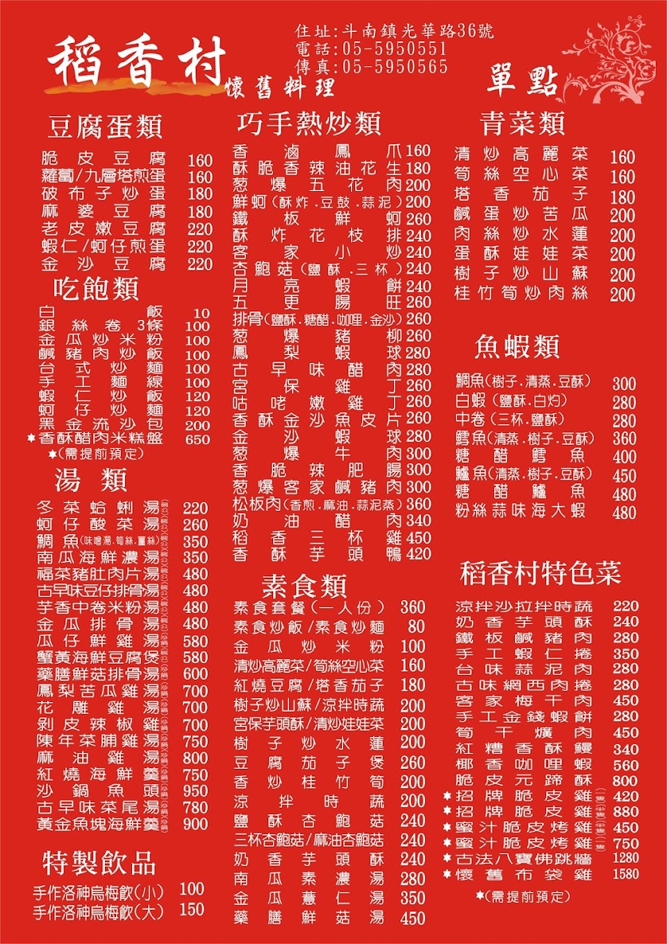 2024最新在地推薦餐廳的菜單_稻香村懷舊料理的菜單、圖片