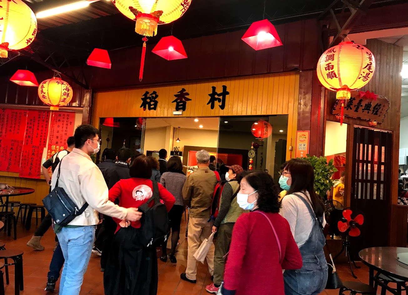 中台灣喜宴之旅來到晚餐時刻,遊覽車開到雲林,今天的行程就要結束了。晚餐在「稻香村懷舊料理」用餐,一行人更多了,開了五桌,可見本家族的龐大。一上桌就來上一盤沙拉,青色花椰菜可口極了。 桌上一瓶「古早味」酸梅湯,我們就喝了2瓶,生津止渴開胃。 接下來再上一道烤雞(附上一碗雞油),使得肉質更滑嫩;炸過再烤過的豬腳,皮脆內軟不油膩;老菜脯熬煮的雞湯,湯頭更勝;包芋頭泥當內餡,沾上芝麻過油鍋,芋頭香氣十足不死甜;炸鰻魚、蝦子及清蒸魚陸續上來,又是滿足的一餐。晚上該找時間走走運動運動了。