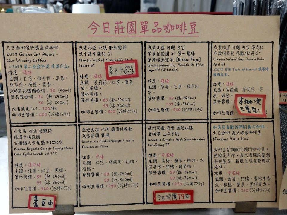 2024最新在地推薦餐廳的菜單_九日咖啡 自家烘焙(北車二店)的菜單、圖片