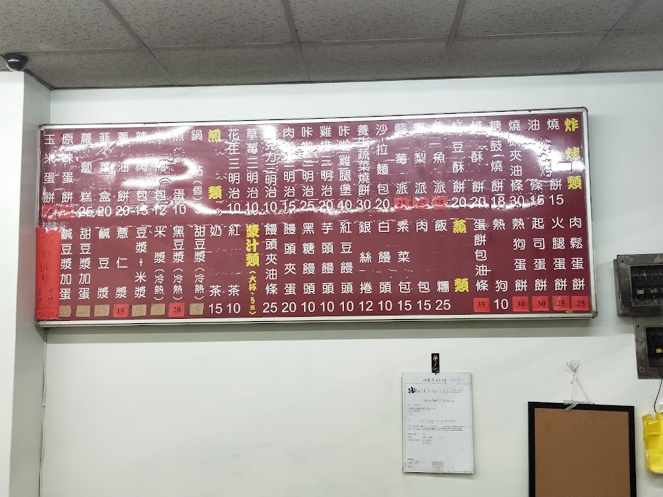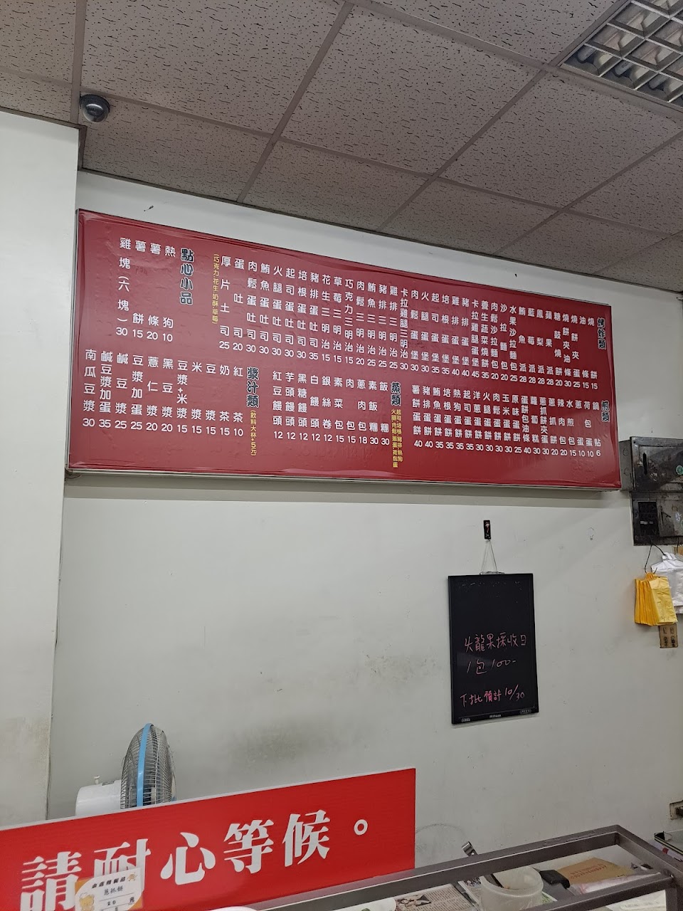 春節假期期間少數有開店的早餐店,中式早餐店要吃現作的品項,燒餅油條是首選,豆漿也很濃純香,唯大杯豆漿價格跟北部城市不相上下 服務 外帶 餐點類型 早餐 平均每人消費金額 $1-200 餐點:4 服務:5 氣氛:4 建議的餐點