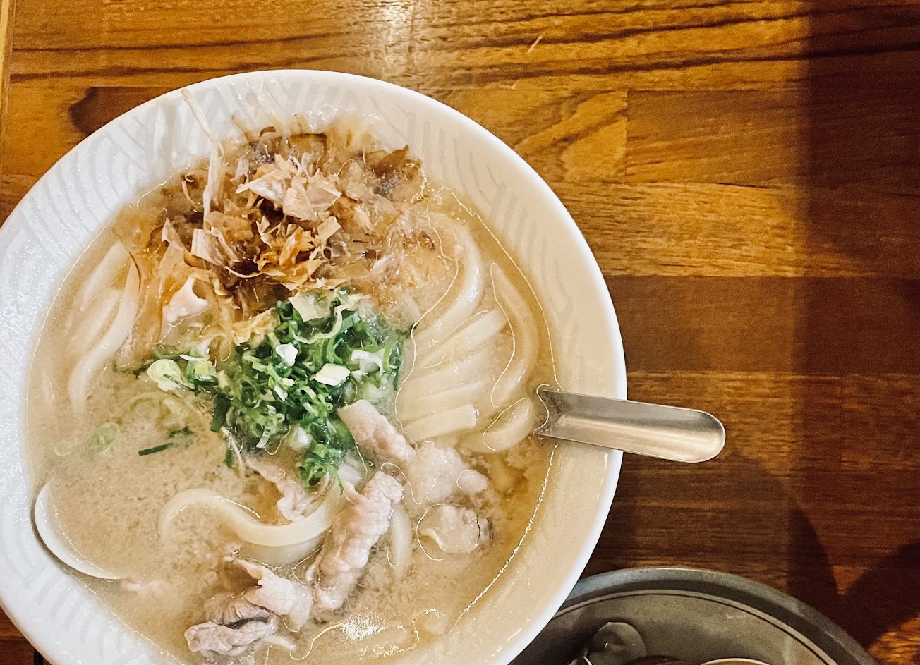 麵體Q彈不軟爛 且給的料真的很大方(豬肉吃不完) 湯頭因柴有放上魚片提味, 濃郁但喝起來又是舒服清爽 真的很好吃!!