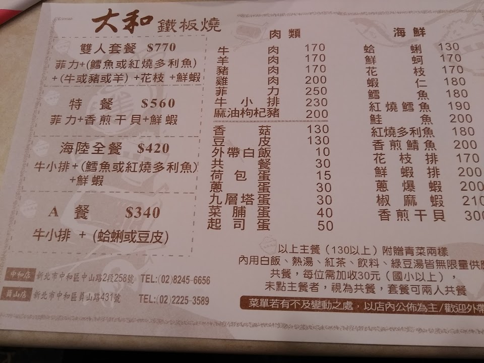 2024最新在地推薦餐廳的菜單_大和鐵板燒的菜單、圖片