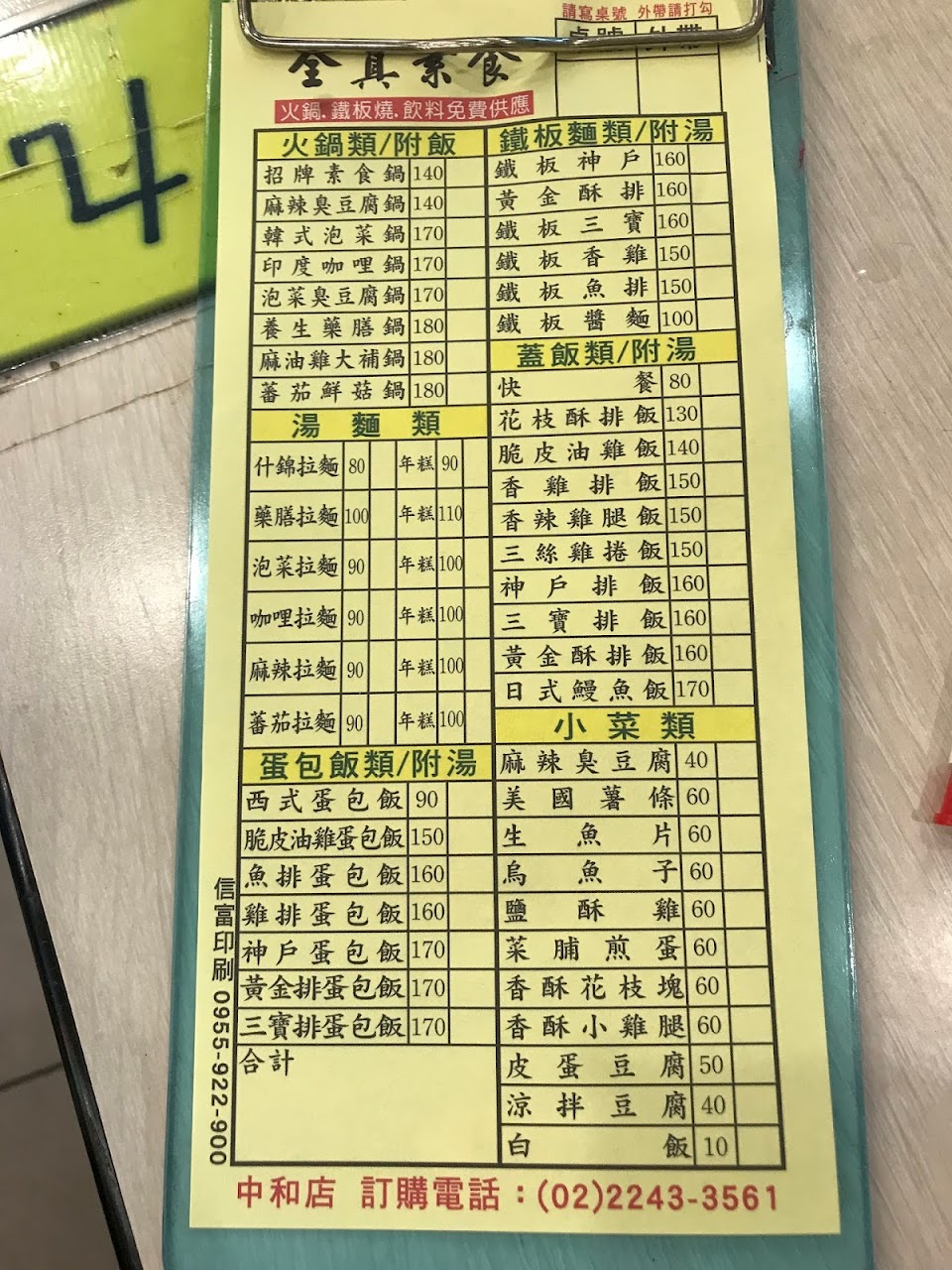2024最新在地推薦餐廳的菜單_全真素食火鍋鐵板燒(中和店)的菜單、圖片