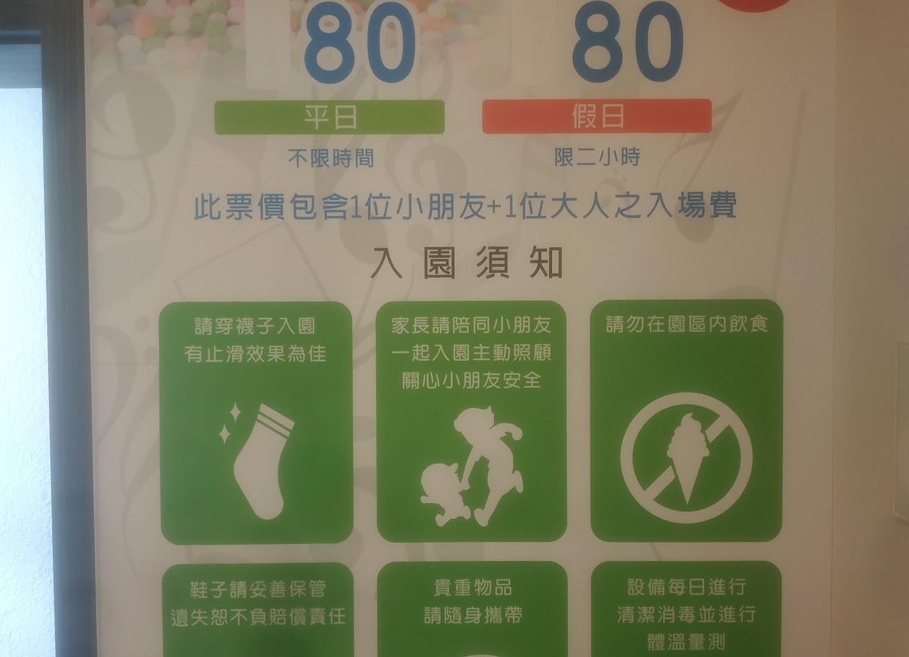 史上最髒的親子餐廳、灰塵很厚,設施旁就是超厚的灰塵,遊樂器材裡面都是灰、頭髮,一看就是沒在打掃,二樓跳床旁的縫超大,小孩會直接掉進去!設施都很破舊了~希望可以改善⋯⋯不然真的可惜了 哺乳室的尿布台也是黃色污漬,環境真的太髒亂,須改善,第一次去到這麼髒的親子餐廳還收入場費80的😹(好玩乾淨的話收400都沒差) 唯一不錯的是服務阿姨人還不錯一星,餐點還行一星。 …