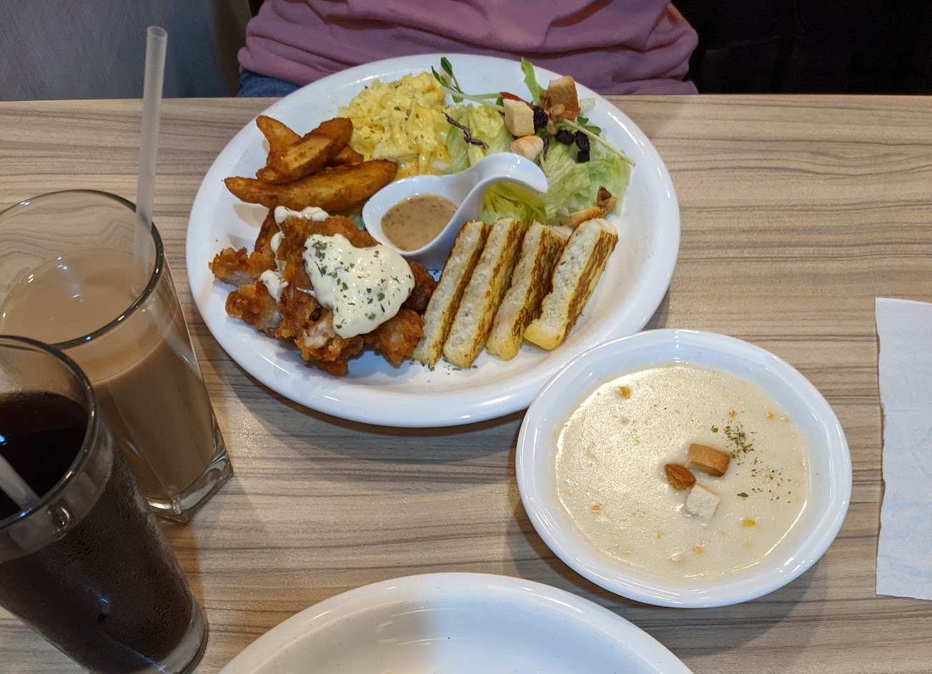 骰子牛沒有騷味,麵包有嚼勁、炸薯條好吃、奶茶甜度適合可續杯、濃湯不是我喜愛的奶味(因奶騷味過濃)、生菜沙拉ok,整體cp值不錯. 服務 內用 餐點類型 早午餐 平均每人消費金額 $1-200