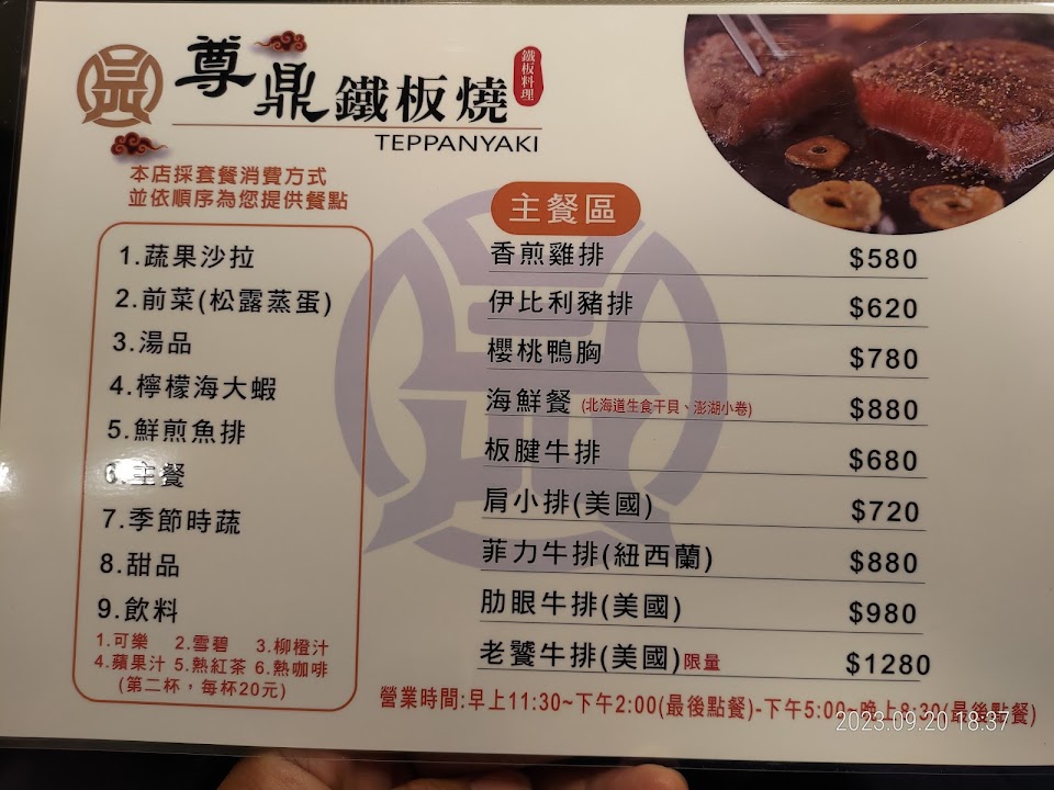 2024最新在地推薦餐廳的菜單_尊鼎鐵板燒的菜單、圖片