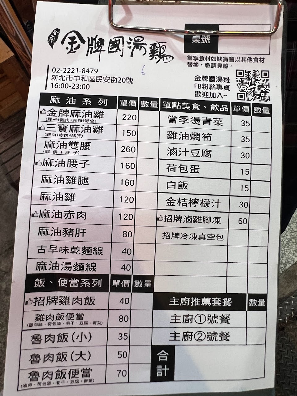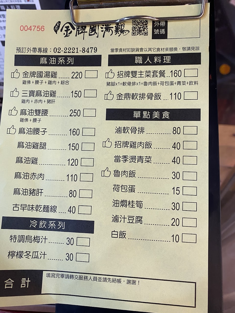 2024最新在地推薦餐廳的菜單_金牌國湯雞 中和民安街的菜單、圖片